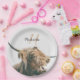 Highland cow portrait custom name initial monogram paper plate
