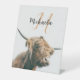 Highland cow portrait custom name initial monogram. Portrait photograph of a majestic orange brown highland cattle on a foggy day with white background.