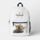 Highland cow portrait custom name initial monogram. Portrait photograph of a majestic orange brown highland cattle on a foggy day with white background.