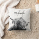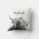 Highland cow portrait initial monogram black white cushion