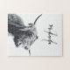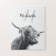 Highland cow portrait initial monogram black white jigsaw puzzle