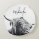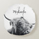Highland cow portrait initial monogram black white round cushion