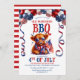 The coolest highland cow sporting a pair of sunglasses and waving a flag underneath a patriotic balloon arch in red, white and blue is the basis of this "4th of July" "BBQ" celebration.