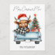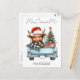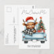 Highland Cow Vintage Blue Truck Merry Christmas Postcard