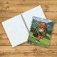 Highland cow cartoon wearing Boyd tartan scarf. Custom background landscape on both covers. Custom text.