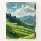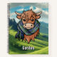 Highland cow cartoon wearing Gordon tartan scarf. Custom background landscape on both covers. Custom text.