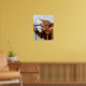 Highland Cow with Hair Dryer Blow Drying Bathroom Poster