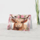 Highland Cow with Pink Roses Festive Christmas Holiday Card
