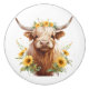 Highland Cow with Yellow Sunflower Flower Crown Ceramic Knob
