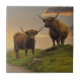 Highland Cows At Sunset Tile