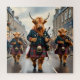 Pictured Walking Down A Crowded Street Are Scottish Highland Cows In Tartan, Taking Part In A Bagpipe Parade. If You Would Like This Image In Black And White Go To Customize, Find Filter On The Right Side In Designer, Click Black And White In Filter, Happy Designing.