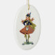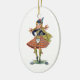 A delightfully pretty Scottish Highland lass in traditional costume is performing the Highland Sword Dance, Ghillie Callum, on this colourful, exciting ornament.