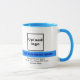 Emphasize your business name. Highlight it. Light blue combo mug that you can customise to put your business name with highlight. Customisable mug that you can use in your coffee shop, diner or restaurant business to build brand name awareness while your customers enjoy sipping the aromatic and tasty coffee or tea that you served to them. Mug as promotional product, giveaway item or gift to your customers or clients, a marketing strategy to advertise your business or to promote your brand. To customise this mug, upload your business logo, type your business name, address and phone number. Please check the appearance on front and back sides after uploading logo and typing texts. If the appearance is pleasing to you, you can place your order now. If you need to resize and move the logo and texts to fit on this mug or on the size and style that you will choose, please change in the design tool. You can also make other changes according to your preference in the design tool such as changing the highlight colour, font colour and font style.