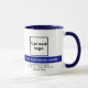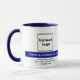 Emphasize your business name. Highlight it. Navy blue combo mug that you can customise to put your business name with highlight. Customisable mug that you can use in your coffee shop, diner or restaurant business to build brand name awareness while your customers enjoy sipping the aromatic and tasty coffee or tea that you served to them. Mug as promotional product, giveaway item or gift to your customers or clients, a marketing strategy to advertise your business or to promote your brand. To customise this mug, upload your business logo, type your business name, address and phone number. Please check the appearance on front and back sides after uploading logo and typing texts. If the appearance is pleasing to you, you can place your order now. If you need to resize and move the logo and texts to fit on this mug or on the size and style that you will choose, please change in the design tool. You can also make other changes according to your preference in the design tool such as changing the highlight colour, font colour and font style.