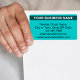 Shipping labels are always used for packages or parcels and sometimes for mail envelopes but it can also be used as a marketing material to advertise your business or to promote your brand to customers or clients. Customisable teal green shipping label with your highlighted business name, a label that you can use to build brand name awareness. Emphasize your business name. Highlight it. Make it noticeable to customers or clients. To customise this shipping label, type your business name, address, phone number, e-mail and website or social media page. Please check the appearance after typing texts. If the appearance is pleasing to you, you can place your order now. If you need to resize or reposition the texts, please adjust in the design tool. You can also change the highlight colour, background colour, font colour and font style in the design tool.