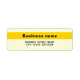 Emphasize your brand or business name. Highlight it. Make it noticeable to customers or clients. Yellow return address label with your highlighted brand or business name and address. Return address label for you to conveniently and quickly put your brand or business name and address on envelopes. You can also use it as a marketing material to advertise your business or to promote your brand to customers or clients. Customisable return address label that you can use to build brand name awareness. Please check the appearance after typing text. If the appearance is pleasing to you, you can place your order now. If you need to resize or reposition the text, please adjust in the design tool. You can also change the highlight colour, background colour, font colour and font style in the design tool.