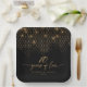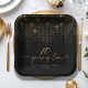 This elegant paper plate is part of a sophisticated collection, featuring luxurious geometric backgrounds and intricate, shimmering gold details. This classic design exudes a glamourous charm, with a colour palette of black and glowing gold tones. Your name and anniversary date are proudly displayed with the expression '10 years of love'. Search ID1165 to see other products in this design set.