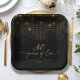 This elegant paper plate is part of a sophisticated collection, featuring luxurious geometric backgrounds and intricate, shimmering gold details. This classic design exudes a glamourous charm, with a colour palette of black and glowing gold tones. Your name and anniversary date are proudly displayed with the expression '30 years of love'. Search ID1165 to see other products in this design set.
