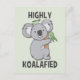 Highly Koalafied - Highly Qualified. A cute gray Koala cartoon graphic drawing with a koala bear pun. Funny and sweet wild animal design. Australian wild baby animal on a eucalyptus tree with gum leaves