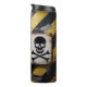 This humourous distressed sign features "WARNING:" above the declaration "HIGHLY SARCASTIC - APPROACH WITH CAUTION". A prominent black skull and crossbones symbol reinforces the tongue-in-cheek warning. The entire metal-look sign is set against a grungy, chipped yellow wall with diagonal black hazard stripes, creating a bold, witty statement piece.