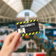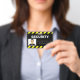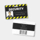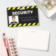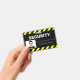A black and yellow alert or warning sign style line frames the top and bottom portions of the ID badge, making it highly visible and easy to recognise.
