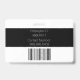 The back of the badge features additional employee or company information printed over a black background, with a sample barcode placed at the bottom. You can replace the scan code with your own, or another image, such as a custom logo.