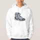 A hiking lover with a hiking boot and words that says hike more worry less. This design looks really effective on this Mens Hoodie