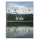Notebook/journal featuring photo of Mt Adams and text "Hike"