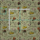 Nature themed light khaki green fabric with a hiking boots, sunglasses and branches pattern