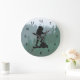 Wall Clock, 25.4 cm Round Black Wooden Frame