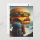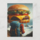 A long distance thru trail hiker on the coast takes in the views but thinks about a big juicy cheeseburger that they will be getting at a town stop along the way surreal fantasy art