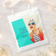 Wildly funny and unique, this birthday party favour bag is designed for a fabulous woman celebrating her 40th Birthday. It features a kitschy stylish woman in striped sunglasses and hair turban with a polka dot bag and striped towel, rocking her attitude. The humour is carried out in the bold text title "FORTY IS THE NEW F-BOMB". Personalise the name with the fabulous Birthday Girl. The retro colour scheme of aqua, beige, navy and red adds to the fun of this design.