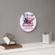 The clock did not take as long to arrive as I thought it might and was extremely well packaged. I didn't do the measurements so I didn't realize it is a little smaller than the average clock but that does not matter (just make sure you check if that's important to you).It is really nifty! It seems very solid and well made not flimsy at all. It has been going well and has kept good time in its few weeks on my wall. Nice product. Gets noticed too! Nicer in real life than the picture but true to the picture