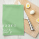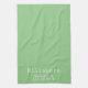Kitchen towel with Hillsboro Oregon longitude and latitude coordinates in vintage typewriter font on light green background