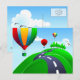 Hilly road with balloons, postcard