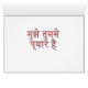 "मुझे तुमसे प्यार है" - "I love you" in Hindi. Give this lovely card on Valentine's Day or whenever you wish to express your love. A single rose on a plant stands out against a reddish background.