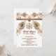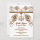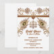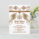 A beautiful henna inspired decorative lotus flower and swirls horizontal border hugs the top edge and has two decorative peacock feathers plus a feather flourish below it. The elements are set on a white background that has dark brown text templates on it for your custom wording. This design is ideal for any Muslim, Islamic, Hindu, Hindi or Indian bridal shower; wedding; anniversary or event.