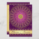This dramatic purple and gold wedding invitation has a removeable central gold FAUX engraved look medallion with the Hindu god Ganesh on it, along with a large central gold scroll circle pattern on it with ornate swirled hearts detailing on it with gold stars and dots that lay over top of a deep purple background with another layer of fine bright purple swirls and scrolls on it. There is also a gold tone band across the bottom of the invitation that has the names of the bride and groom on it. ****PLEASE NOTE that none of the elements on this invitation are raised or embossed. Everything is printed flat. This invitation would be perfect for a spring, summer, fall, or winter Indian, Hindu, Sanskrit, or Muslim wedding ceremony, and would also work well for other formal events requiring class and taste. It is shown here on basic paper. If you want a heavier weight paper, I suggest the metallic ice or champagne paper, which would give it a lovely opalescent lustre. I do NOT suggest using the metallic gold paper, as it is a very dark brassy gold that will really alter the design. ALSO, if you re-size the invitation, or if you change fonts, or the size of the font, some of the design and/or text may get cut-off. Everything will print as you see it on your monitor. I will not see your invitation, and Zazzle will NOT correct anything (typos, alignment etc.). The text and paper is all customisable. If you need help with this invitation, please email me BEFORE you place your order. If you require any other matching items, or would like any other design elements added to it, such as a symbol etc., or if you need it in another language, please email your request to niteowlstudio@gmail.com.