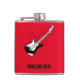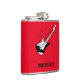 Hip flask with guitar and red background. You can customize the name or add any text you want.