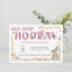 Hip Hop Hooray girl's birthday invitation decorated with butterflies, dainty flowers and an adorable little bunny. Hip Hop Hooray is printed in decorative typography and decorated with butterflies. The floral border has pink and yellow flowers with a cute rabbit and more butterflies. A sweet design for a little girl and perfect for easter and spring birthdays.