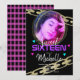 Sweet 16 Birthday Party Invitations with Neon Plaid -Grid Background - Change Photo Unsplash Credits