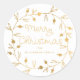 An open and minimalist wreath frames your Merry Christmas wishes which are written in a sparse gold script. Your family follows in a sans serif font. Perfect way to seal your Christmas card envelopes.