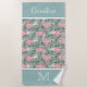 Enjoy total comfort at the beach or sitting poolside, and cool and dry off with this fun, colourful and comfy beach towel. Stand out in the sand with this beautiful contemporary pastel pink flamingos on green palm leafs on light aqua turquoise and pale blue watercolor paint brush strokes pattern. With room to customise or personalise with name, monogram or initials of your choice. Ornate, funky, modern and whimsical design for the artistic fashionista or artsy fashion diva, hip trendsetter, vintage retro watercolor painting art style or abstract motif lover.