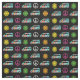Cute hippie fabric with fun retro camper bus pattern of peace signs and pretty flowers in cool neon hippy colours.