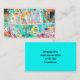 Glamping bohemian hippie teal, white professional business cards. Cute, cool, girly Travel Trailer vintage sixties floral curtains on back window. Trendy, antique, retro, chic, groovy. Unique camper design. Image copyright Marg Seregelyi Photography.