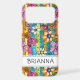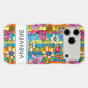 Make a retro statement with this groovy 70s inspired hippie flower power iphone 17 pro max phone case! It's modern and trendy with bright multi-coloured watercolor flowers. Make it uniquely yours with your name in a mod CAP font in black. It will look fabulous on your phone!