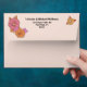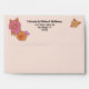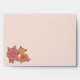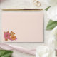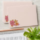 Hippie Flower Power retro 60's 70's envelope with pop art flowers in colours of pink, purple, orange and yellow on a soft pink background.