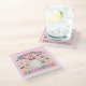 Cute, colourful, fun Hippie Halloween coaster features a hippie ghost with pink witch hat, text that reads Hippie Halloween, and some flowers and little bats and skulls in lavender, melon, aqua, and pink!