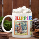 Hippie Holidays. Customise your cute hippie holiday mug with this funky 70s text in fun rainbow colours. A colourful hippy Christmas gift with your vintage family photos.