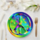 A graphic design of a rainbow flower power peace sign by artist/designer Charmaine Paulson on a party plate.